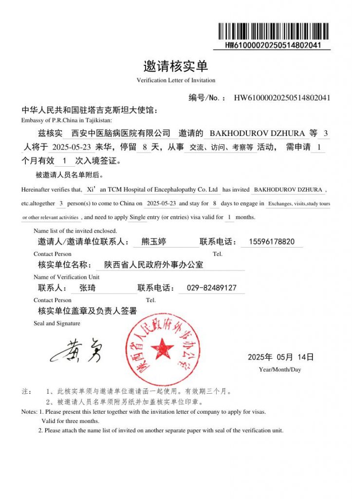The trip will take place from May 23 to May 30, 2025, as part of the exchange, visits and research activities program. The invitation was issued by the Xi’an Hospital of Traditional Chinese Medicine for the Treatment of Brain Diseases. The visit is aimed at strengthening international cooperation, exchanging experience and developing new directions in the field of medicine.
